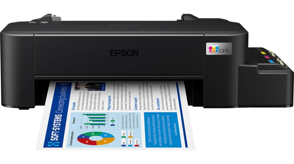 Підвищуйте продуктивність і скорочуйте час простою завдяки простому налаштуванню та надійності друку. Спеціальний резервуар для чорнил повністю інтегровано в принтер, тож ви можете насолоджуватися надійним кольоровим друком без зайвого клопоту, часто пов'язаного з використанням неоригінальних чорнил і систем безкартриджного друку сторонніх виробників. Оригінальні чорнильні контейнери Epson полегшують поповнення резервуара для чорнил завдяки чіткому маркуванню та соплу із захистом від протікань. Принтер L121 має резервуари для чорнил ємністю 40 мл, а тому він менший і компактніший та чудово підійде для домашніх офісів або студентських кімнат. Цей принтер постачається з гарантією на 1 рік або 5 000 сторінок (залежно від того, що настане раніше), що гарантує вам спокій і допомогу за потреби.