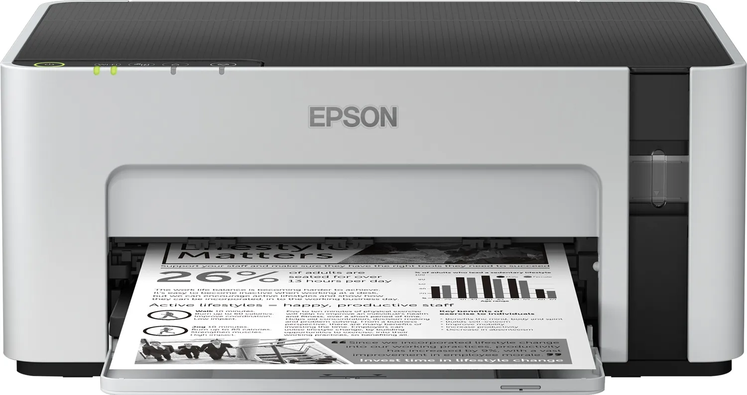 Насолоджуйтеся перевагами мобільного друку та ощадливістю цього довговічного, швидкого й енергоефективного принтера EcoTank із перезаправним резервуаром для чорнил. Економне рішення: друкуйте до 6 000 сторінок чорною фарбою зі змінним картриджем. Швидкий друк за рахунок відсутності часу розігрівання та швидкості друку 15 сторінок на хвилину. З легкістю підключайтеся через Wi-Fi і використовуйте різні програми Epson для мобільного друку.